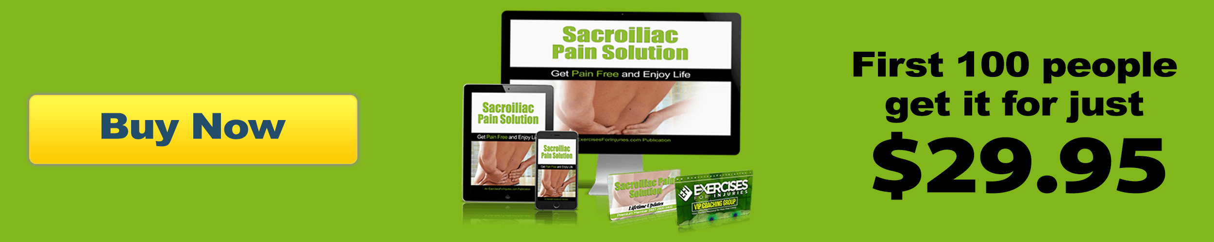 After the first 100 people order, the price for Sacroiliac Pain Solution goes back up to $57 and the 2 bonuses will no longer be included.